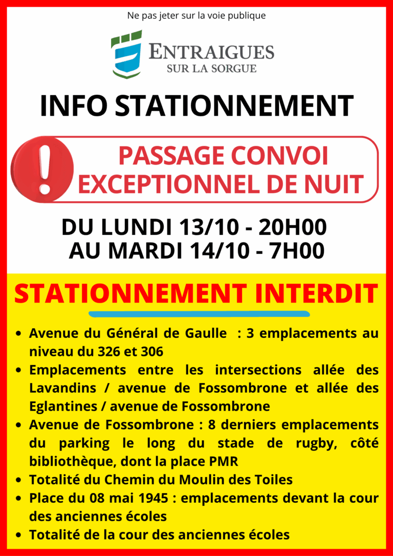 Afin de mieux répondre à la demande d’Entraiguois en recherche de médecin et dans l’attente de la livraison de la salle d’activité du 3ème âge et du restaurant du 3ème âge (qui permettra de libérer l’actuel restaurant du 3ème âge dans le bâtiment des anciennes écoles), la commune va installer provisoirement un bâtiment modulaire dans la cour des anciennes écoles permettant d’accueillir deux cabinets médicaux et une salle d’attente. Les travaux préparatoires pour amener les réseaux (eau potable/eaux usées/électricité/télécommunication) ont été réalisés en fin d’été. Afin d’organiser la livraison du modulaire, le passage d’un convoi exceptionnel est prévu dans la nuit du lundi 13 au mardi 14 octobre. Le stationnement sera donc interdit sur les emplacements indiqués ci-dessous, de 20h00 le lundi à 7h00 le mardi matin.