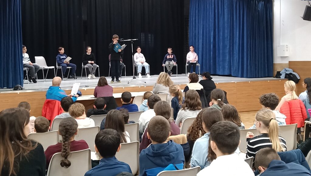 Au total, ce sont 2 élèves filles de CM1, 2 élèves garçons de CM1, 2 élèves filles de CM2 et 2 élèves garçons de CM2 qui ont chacun lu un extrait d’un livre sur scène, avec un micro, face à l’ensemble des élèves du cycle 3. Le jury composé de 5 personnes (2 agents du périscolaire, 2 membres de l’amicale des école et la directrice de l’école) ont élu le champion et la championne, à l’aide d’une grille précise.