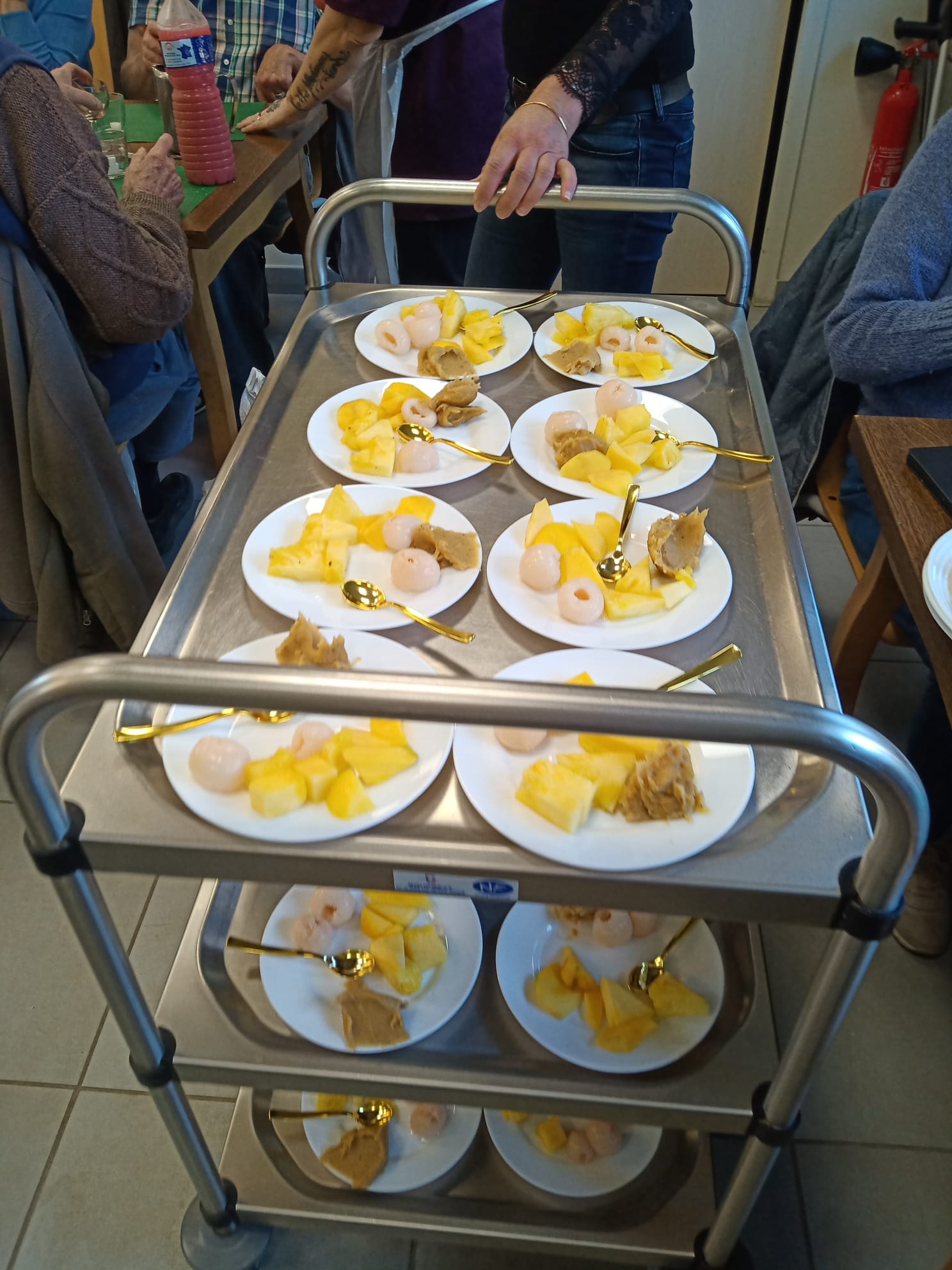 Ce midi, les seniors inscrits au restaurant du 3ème âge ont pris la destination des Caraïbes grâce à une assiette remplie de fruits exotiques !