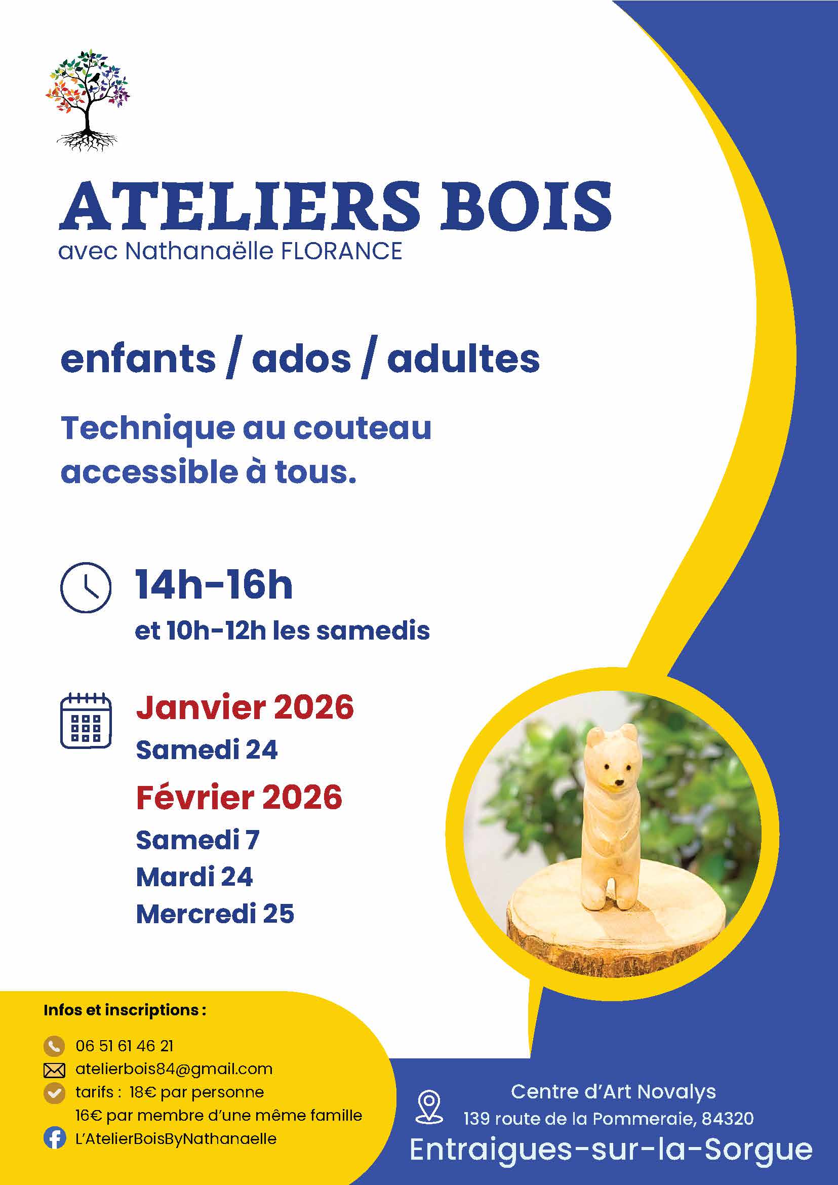 Ateliers bois/modelage pour adultes et enfants