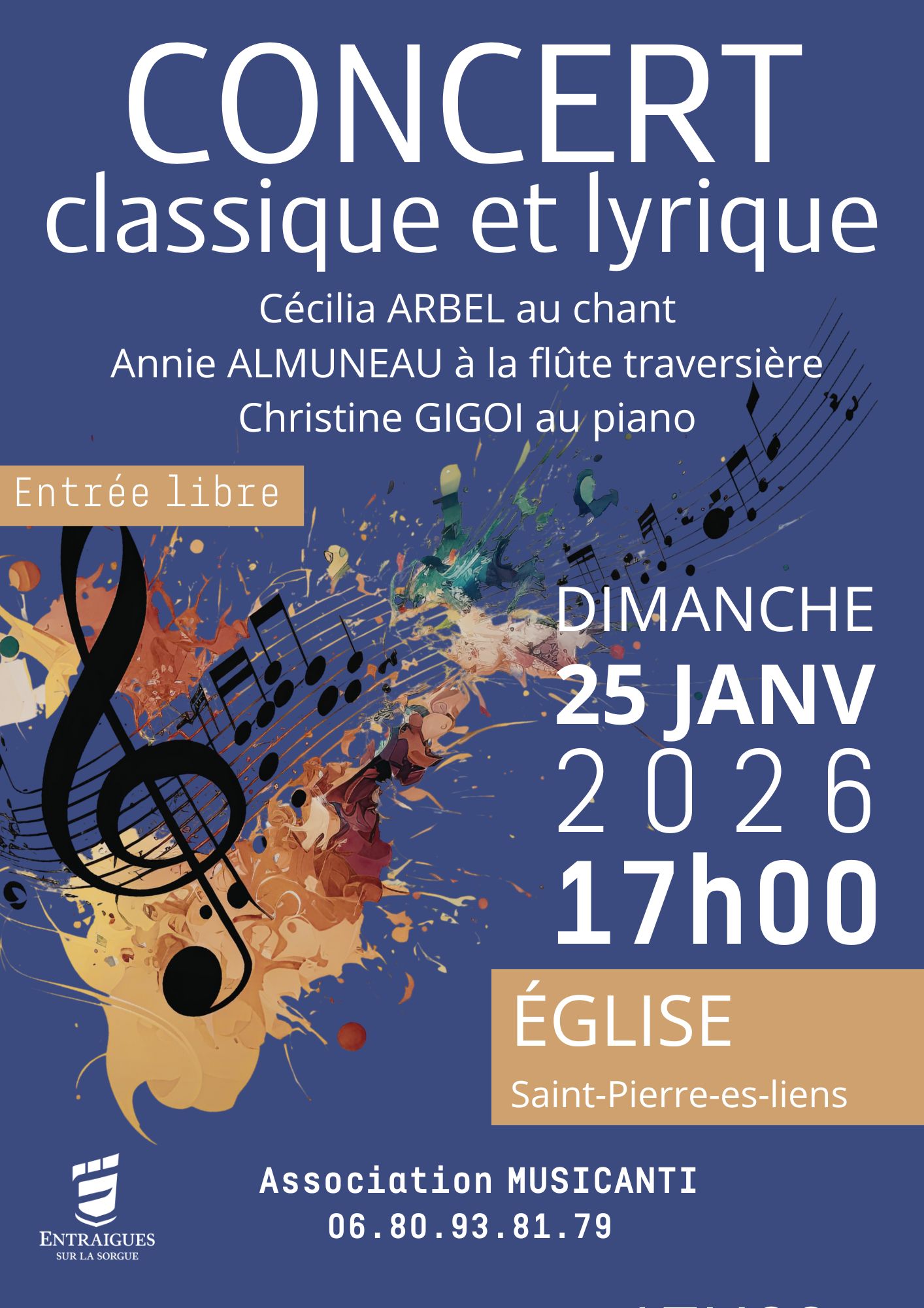 CONCERT CLASSIQUE ET LYRIQUE Ă l’Église Saint-Pierre-es-liens le dimanche 25 janvier 2026 Ă 17h00.