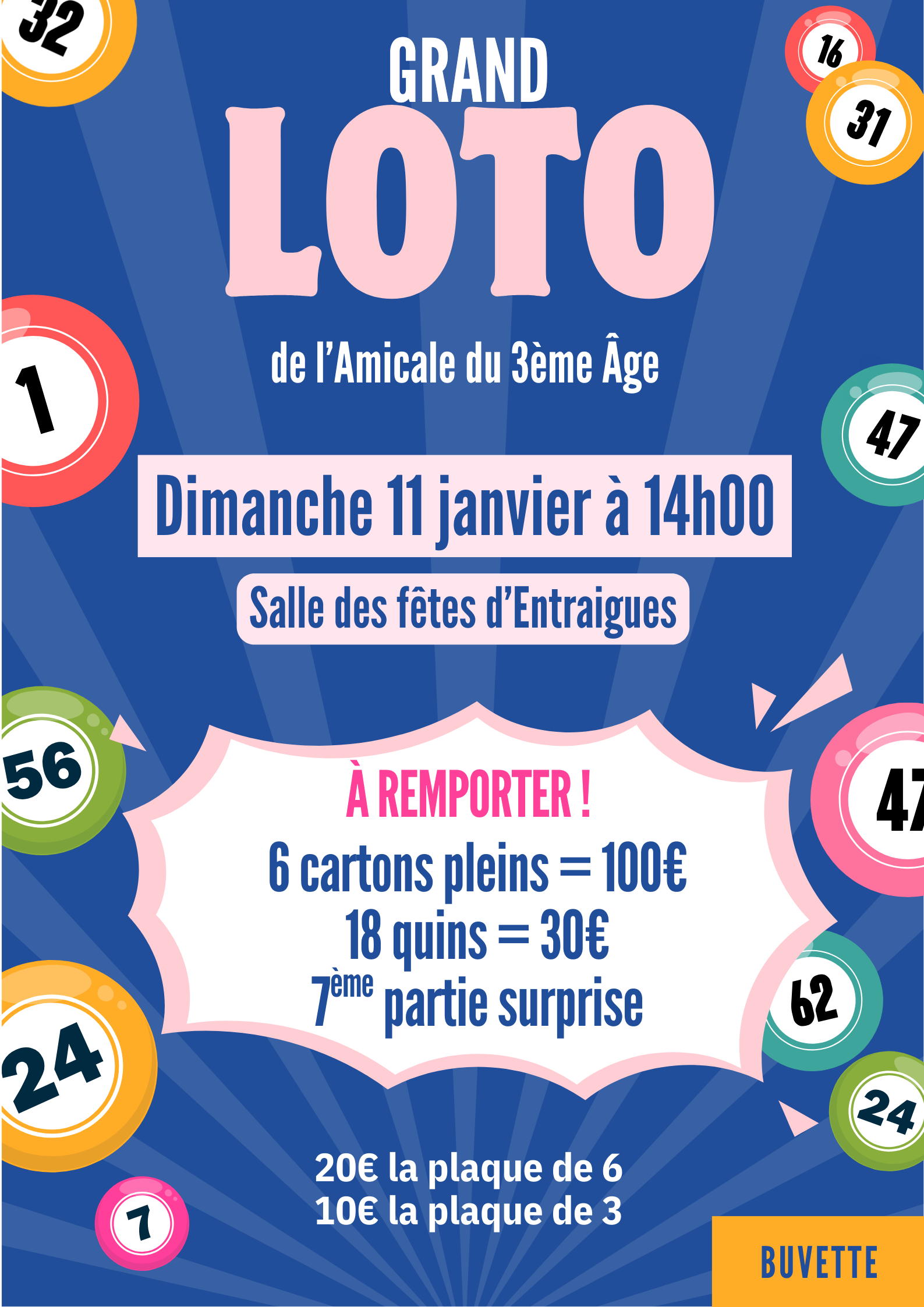 L’Amicale du 3ème âge vous donne rendez-vous le dimanche 11 janvier à partir de 14h à la Salle des Fêtes pour son loto.