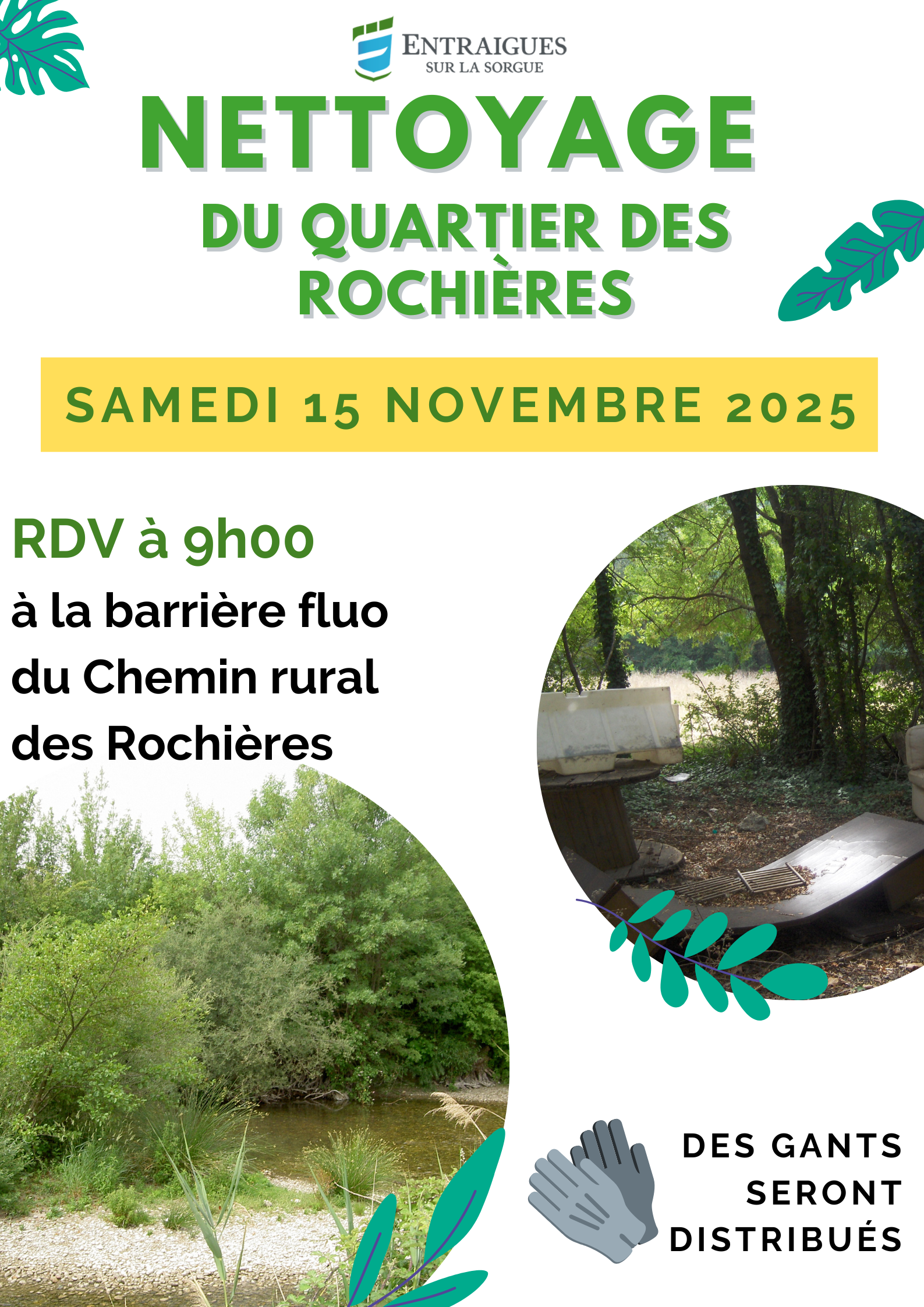 Dans le cadre de la semaine européenne de la réduction des déchets, samedi 15 novembre 2025 est organisé un nettoyage au quartier des Rochières.