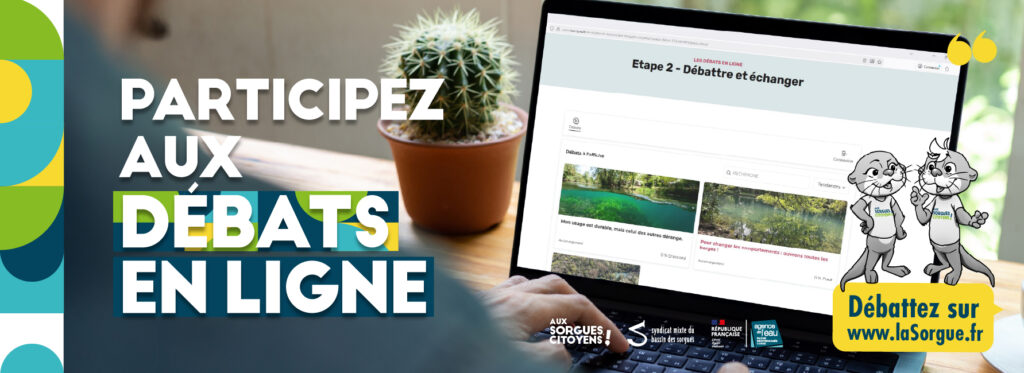 Les débats en ligne permettent à chacun de s’exprimer librement, de partager son ressenti, de confronter les points de vue et de contribuer à la réflexion collective autour de l’avenir de la Sorgue. Modéré et convivial, cet espace est également enrichi de contenus pédagogiques, afin de mieux comprendre les enjeux liés à la rivière et de nourrir les échanges.