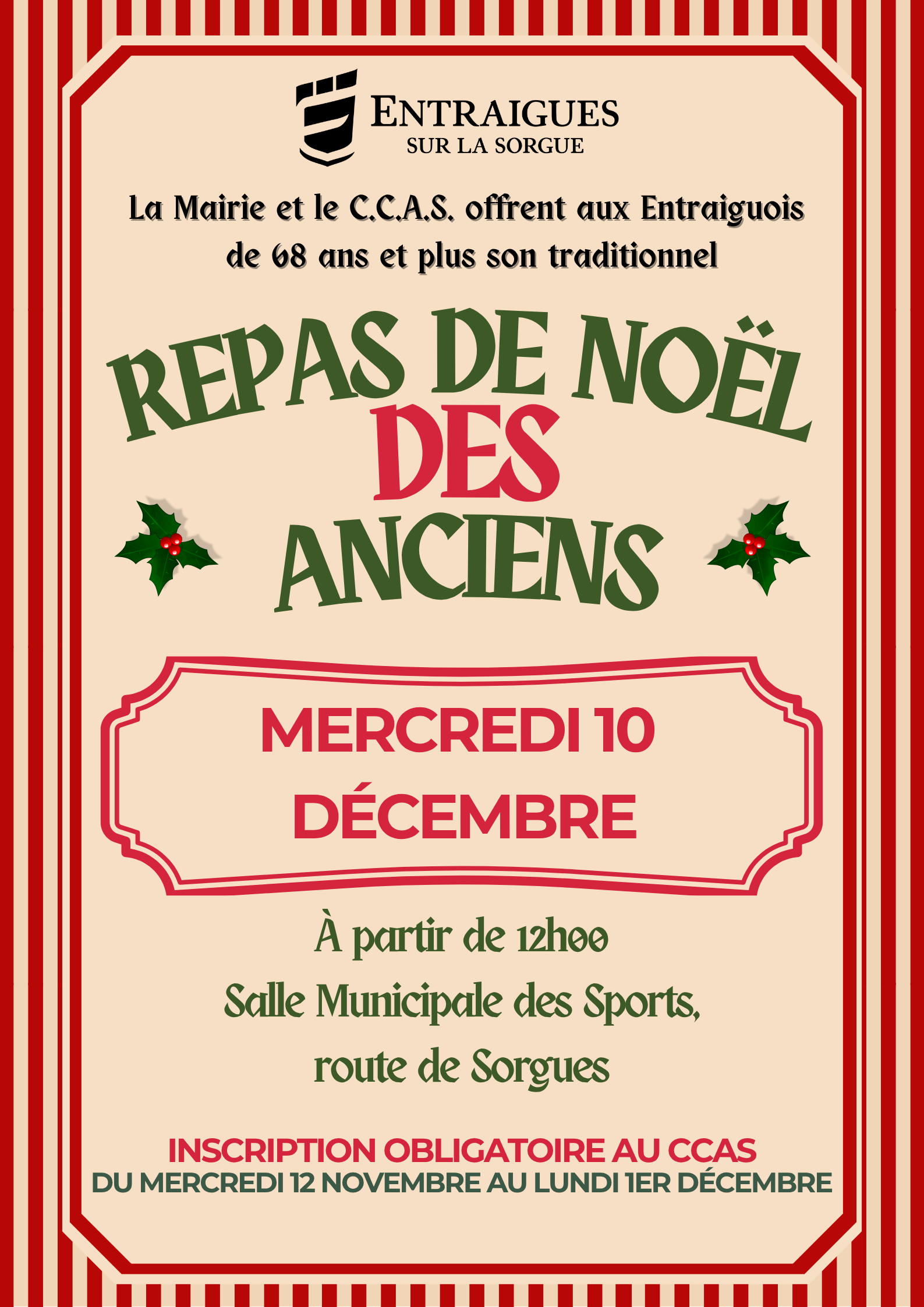 Les inscriptions sont obligatoires du 12 novembre au 1er décembre 2025 auprès du CCAS au 04.90.83.66.42 ou 04.90.83.66.43.