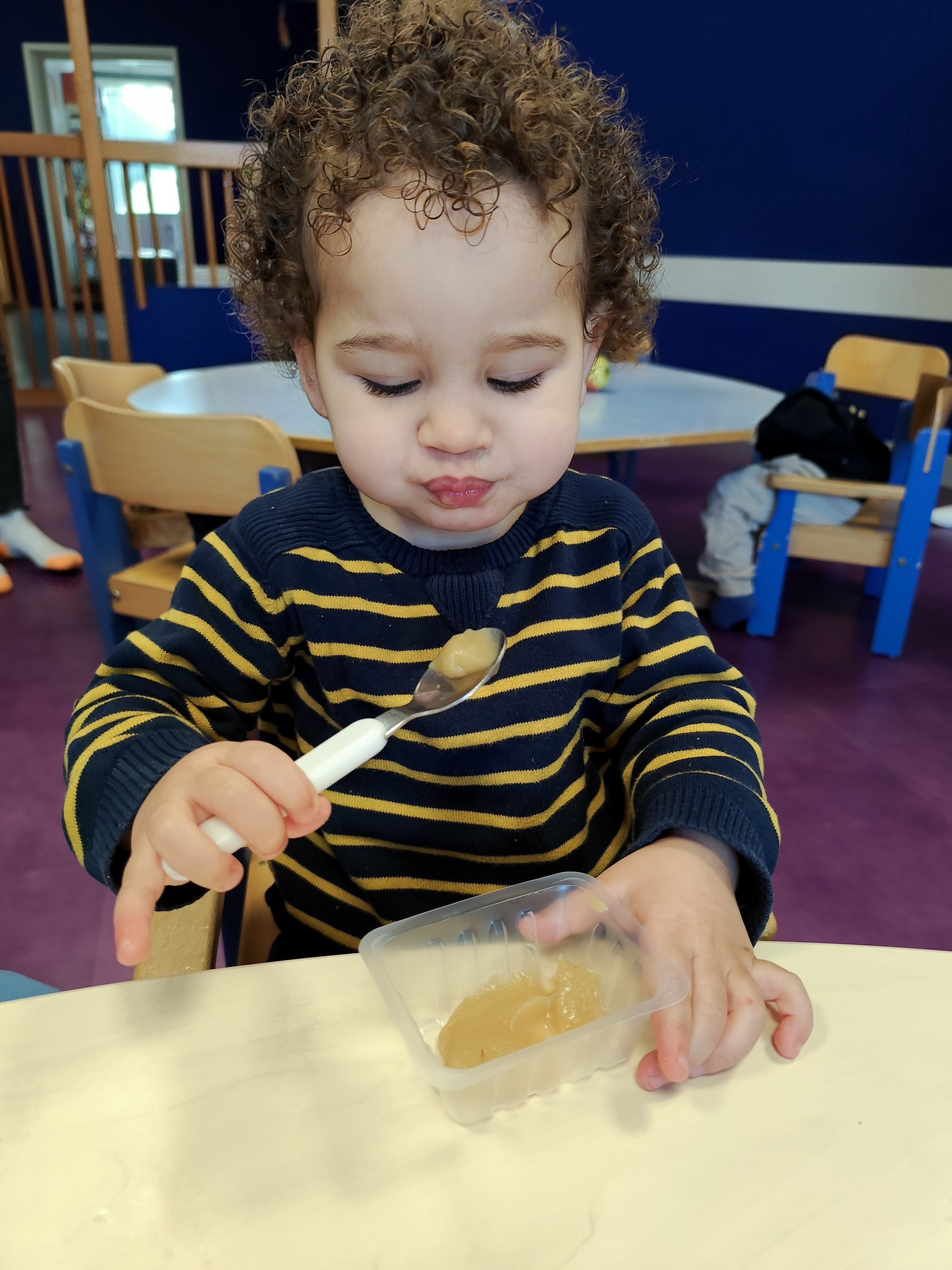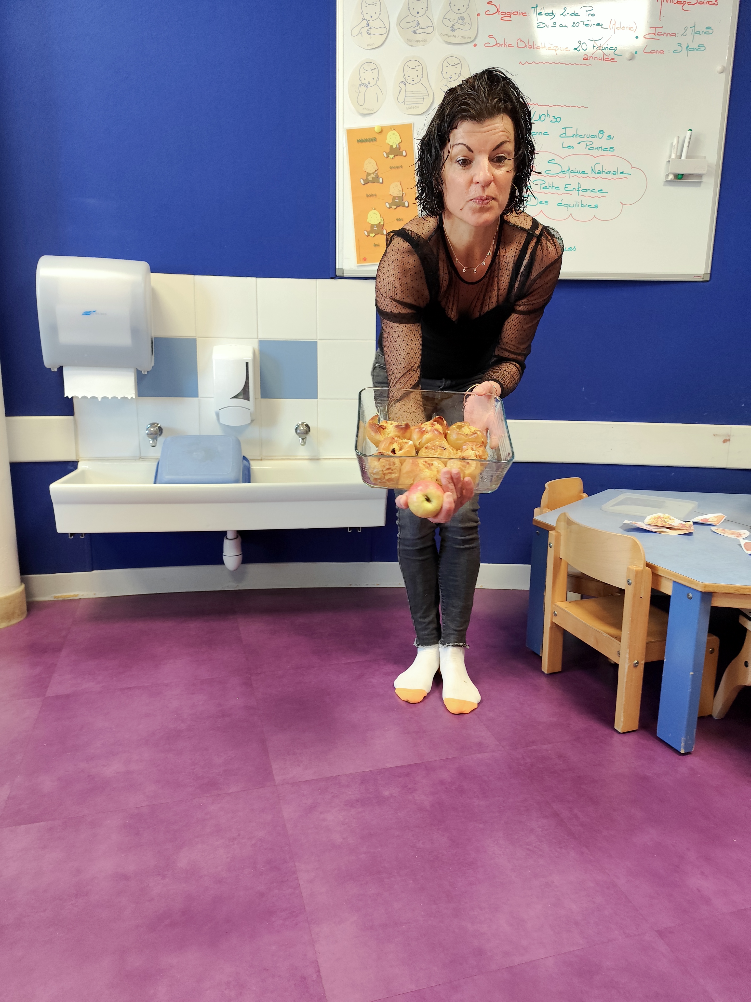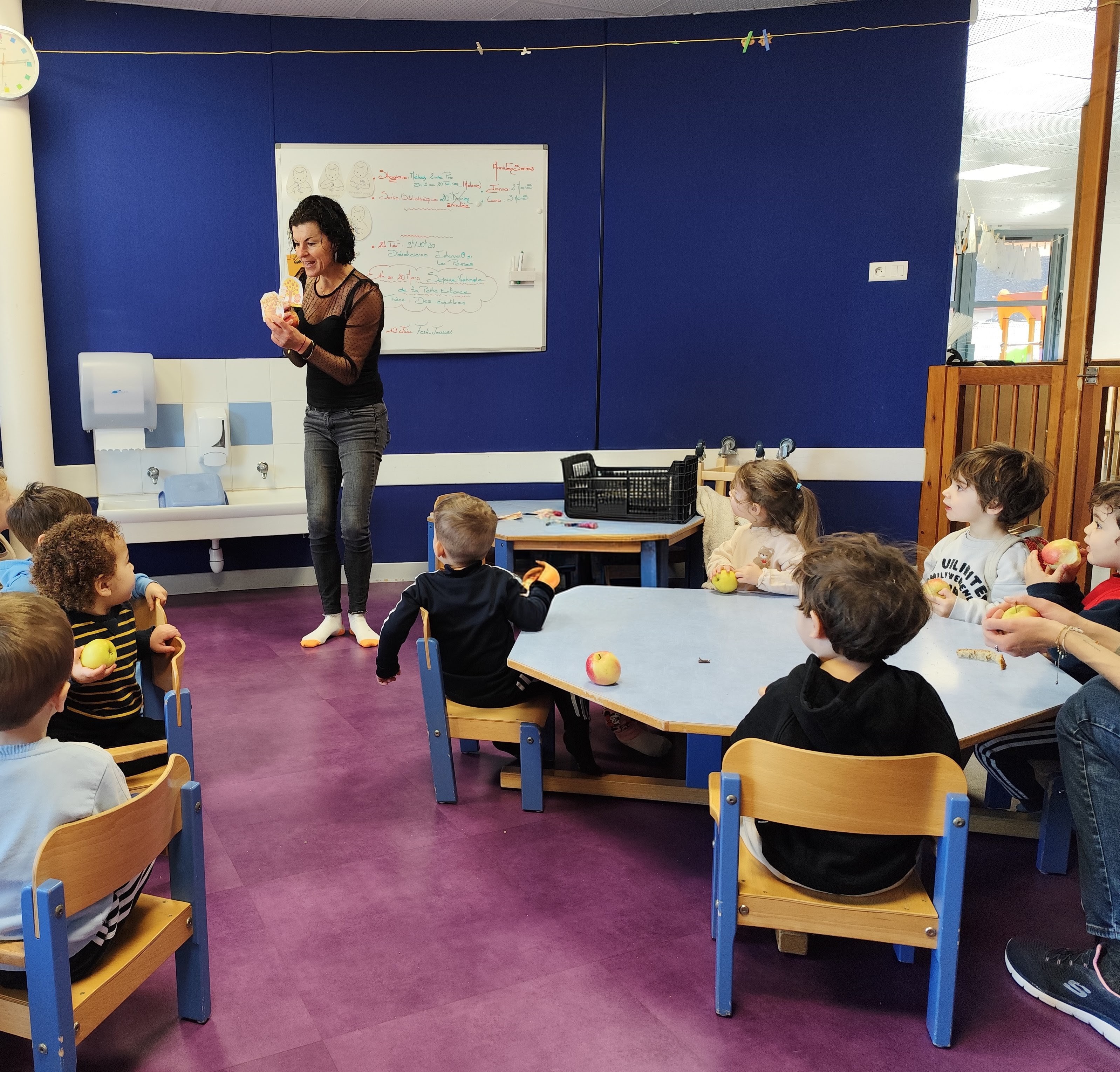 Ce mardi 24 février, les enfants de la crèche municipale La Magnanarelle ont participé à un atelier sur les « Pommes dans tous leurs états ». Vanessa Mouchoux, diététicienne, a sensibilisé les plus jeunes au fruit brut, et éduqué leur palais aux différents goûts et textures de la pomme.